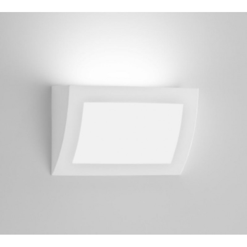 Applique biemissione realizzato in gesso con diffusore satinato in PMMA, adatta per ambienti interni.