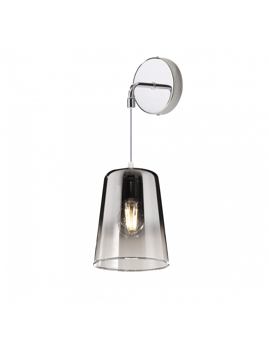 Questa applique della collezione SHADED è composta da un cono in vetro pirex soffiato, struttura in metallo cromato e cavo regolabile in lunghezza.