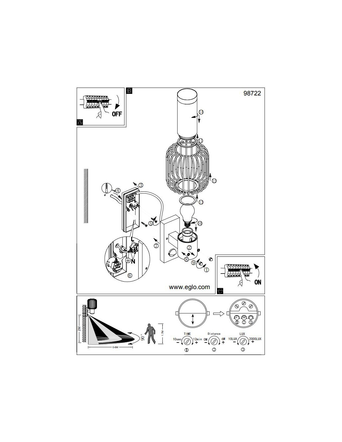 Applique Ingresso Rete Metallo Nero Ravello Con Sensore IP44 Eglo
