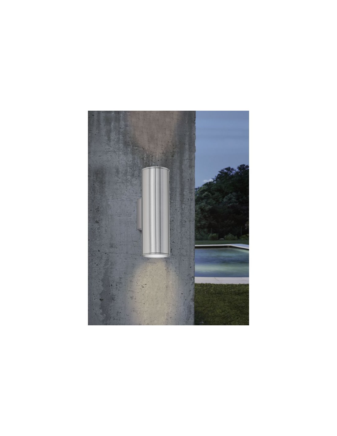 Applique IP44 Cilindro Doppia Emissione GU10 Riga Acciaio Eglo