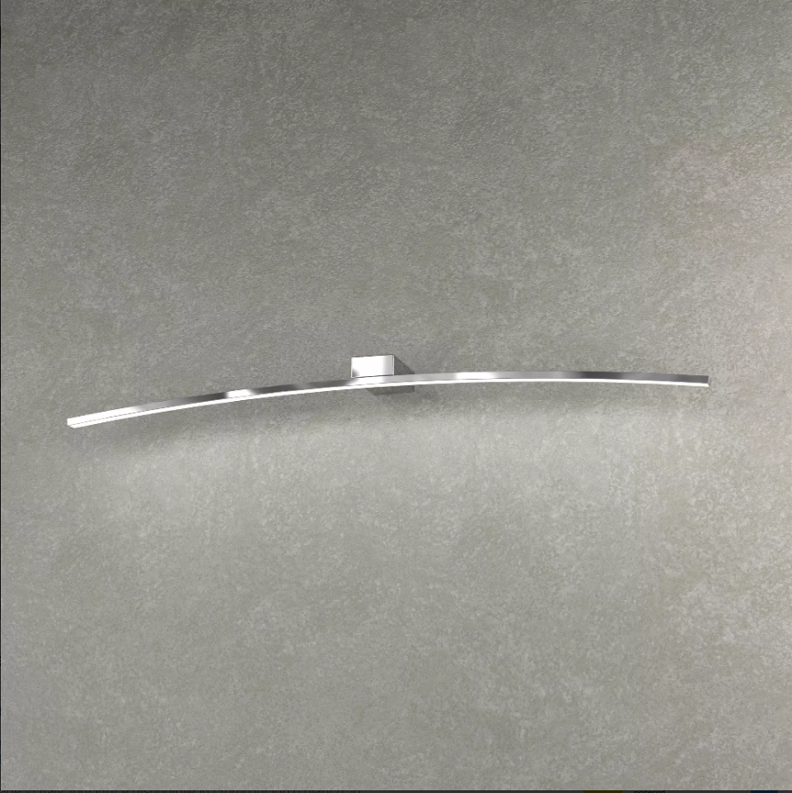 Questa lampada da parete della serie CURVED é interamente realizzata in metallo, disponibile con finitura cromo o bianca. Struttura rettangolare curva con diffusore in acrilico bianco.