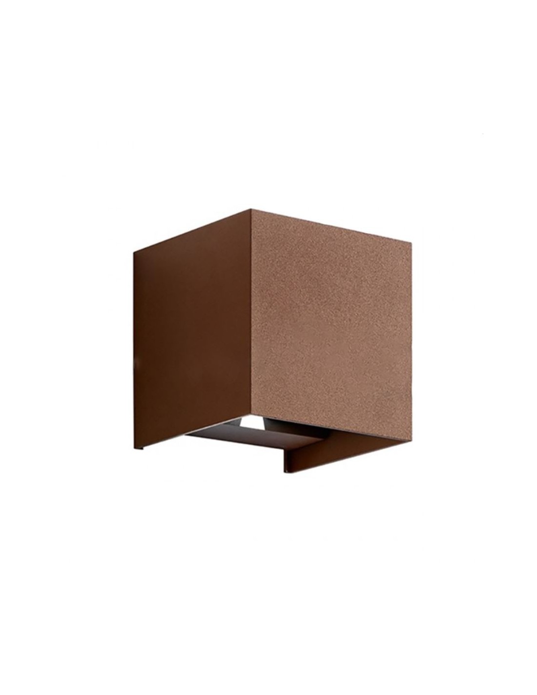Applique biemissione a forma di cubo del brand Gea Led, realizzato interamente in alluminio pressofuso con diffusore in vetro trasparente.