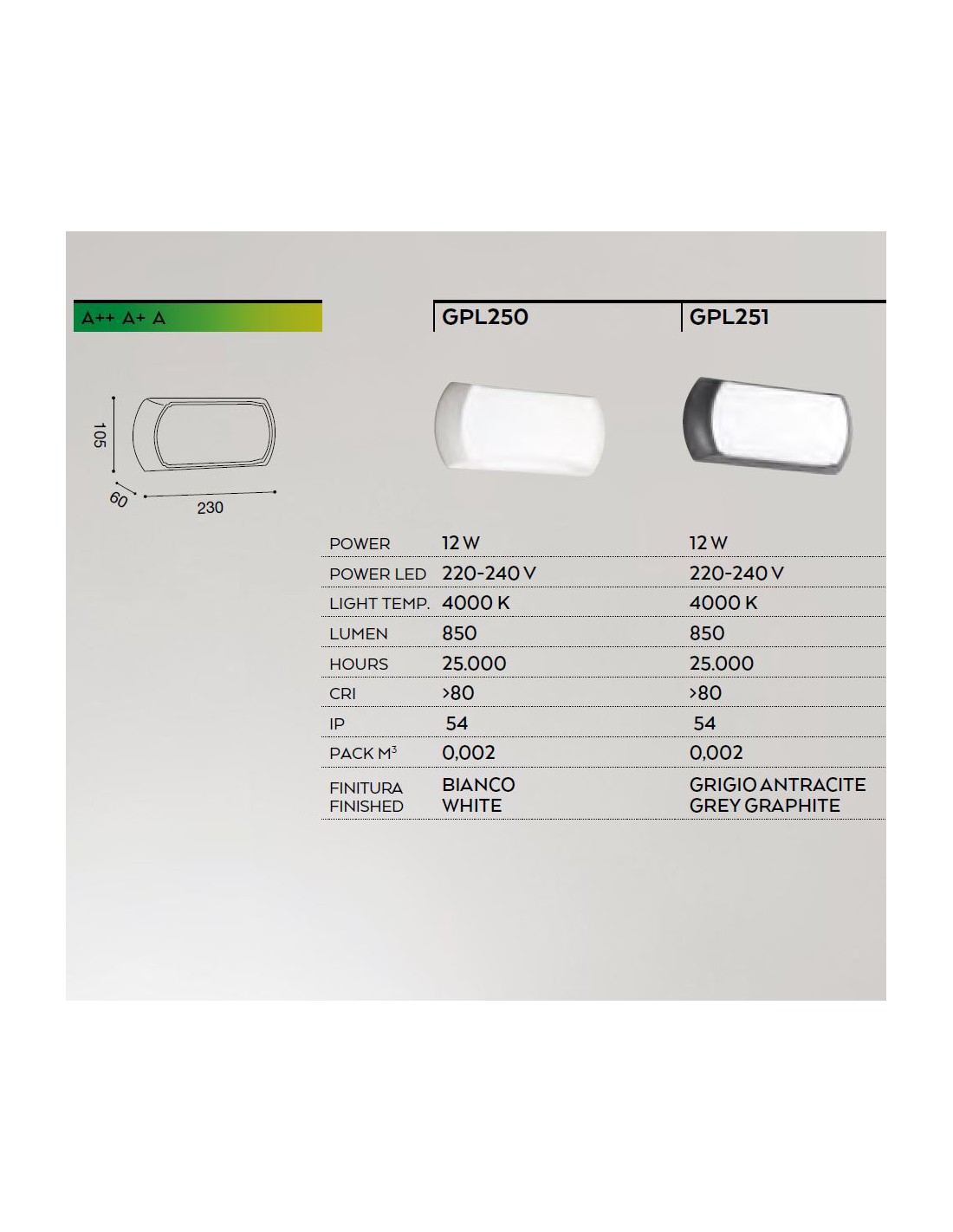 Lampada da parete o soffitto per esterno economica dal profilo essenziale e moderno, con struttura in materiale sintetico e diffusore in metacrilato che permette di emanare un fascio di luce frontale.
