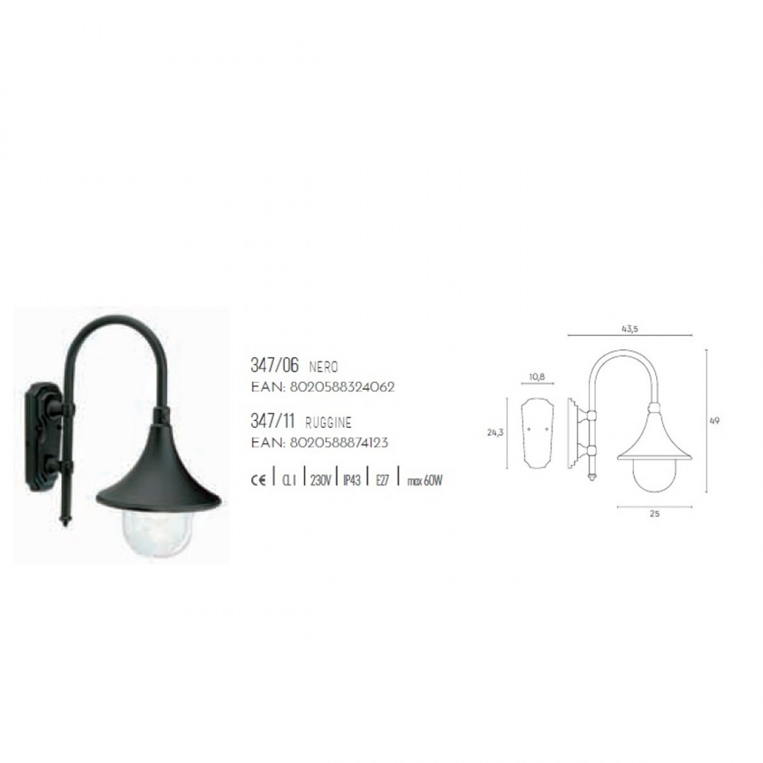 • La struttura della lampada è in pressofusione di alluminio finitura ruggine o nero (trattamento anti-corrosivo con verniciatura a polveri epossidiche), il diffusore in materiale termoplastico trasparente con parabola interna in alluminio riflettente, compreso di contro-base ed accessori per il fissaggio. L’applique ha un altezza di 49 centimetri, una sporgenza di 43.5 centimetri, una lunghezza del diffusore 25 centimetri, per quanto riguarda la contro-base misura una lunghezza di 10.8 centimetri ed un altezza di 24.3 centimetri.La linea LAMPARA è la scelta migliore per arredare l’esterno con gusto ed un tocco di fresca stravaganza, una luce diffusa ma rivolta verso il basso adatta ad ambienti esterni come giardini, porticati, verande, balconi ecc…La lampada da parete ha un grado di protezione IP43 (protezione contro la penetrazione di corpi solidi di dimensioni superiori ad 1 mm – protezione contro la pioggia con caduta fino a 60° di inclinazione) quindi adatto ad ambienti esterni.IL corpo illuminante è provvisto di un portalampada in porcellana attacco E27 per lampada a LED con un altezza massima di 15 centimetri, una tensione di alimentazione 220/240V quindi non necessita di alimentatore. IL LED è particolarmente interessante per la caratteristica di efficienza luminosa. L’evoluzione dei materiali è stata la chiave per ottenere sorgenti luminose che hanno le caratteristiche per sostituire quasi tutte le lampade ad oggi usate, quindi: elevata affidabilità, lunga durata, elevata efficienza, basso consumo.Per quanto riguarda la temperatura colore delle lampade a led al momento dell’acquisto si può prediligere tra: luce calda (2700°K/3200°K), luce naturale (3700°K/4200°K), luce fredda (4800°K/5200°K), che sono valori indicativi.L’istallazione è prevista a parete con tasselli (inclusi).La manutenzione risulta estremamente semplice necessitando di semplice panno inumidito per togliere la polvere in eccesso. Studio e progettazione by LIVOS illuminazione.Lampada esclusa.