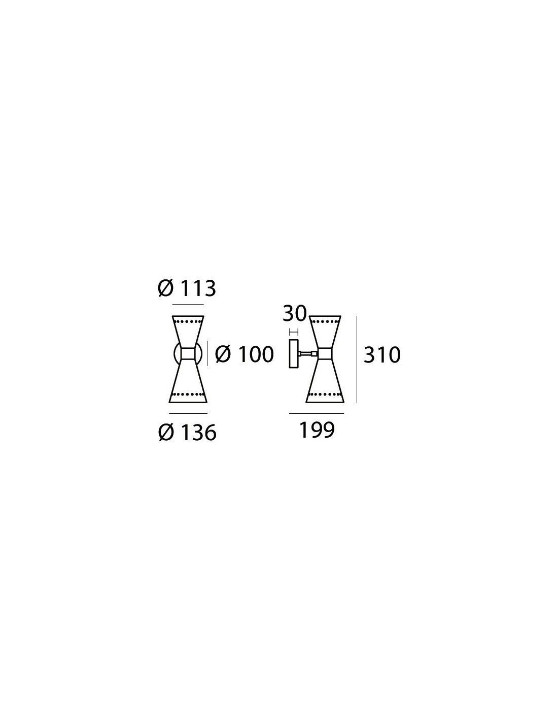 Doppio alloggio per lampadina Led con attacco E14 da 6 watt, resa luminosa 1612 lumen, temperatura colore 2700k (luce calda). Lampadine LED incluse nel prezzo, che garantiranno un’ottima resa luminosa e un basso consumo energetico.