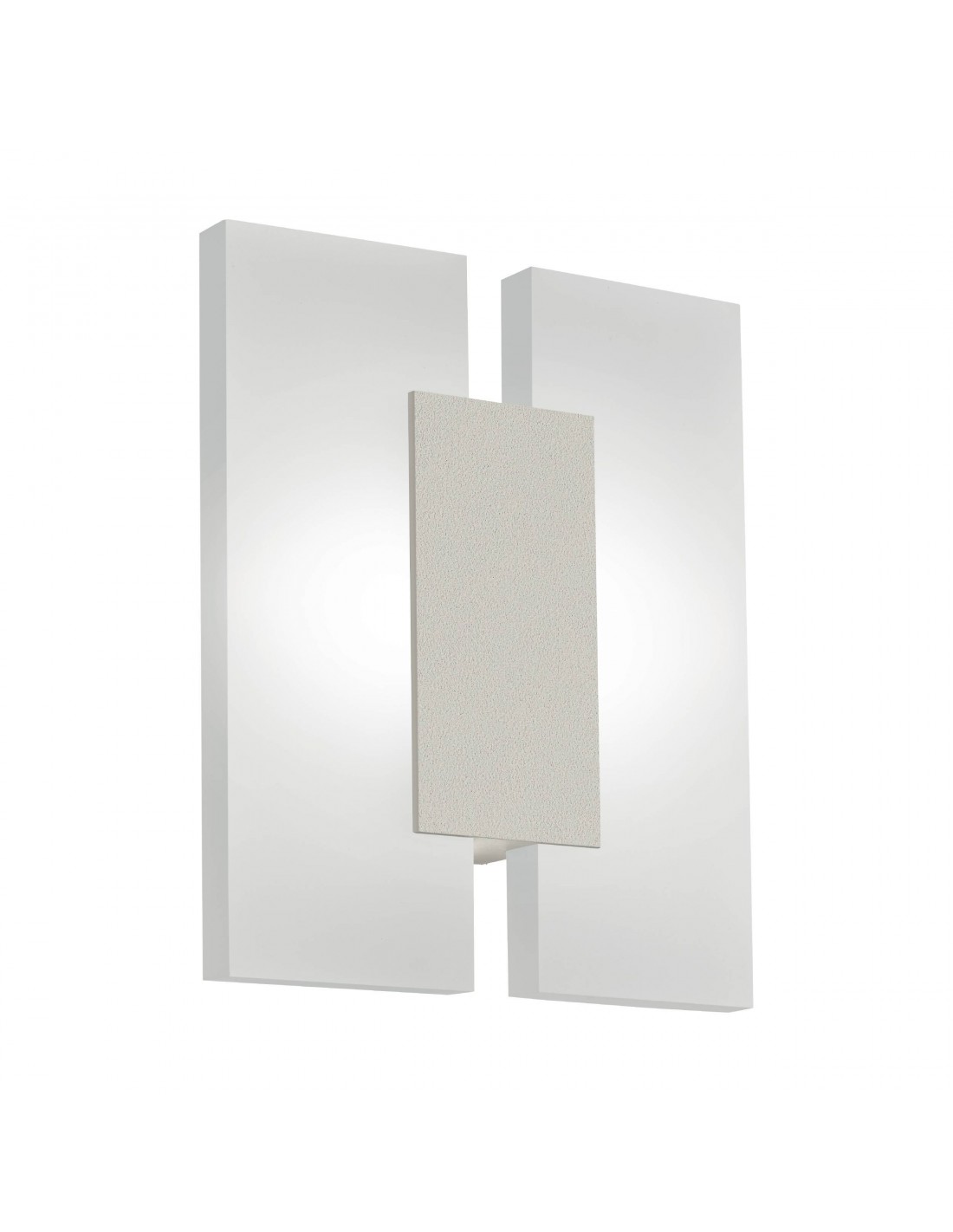 La lampada da parete METRASS del brand EGLO presenta una struttura rettangolare in alluminio finitura nichel satinato con diffusore in policarbonato.