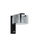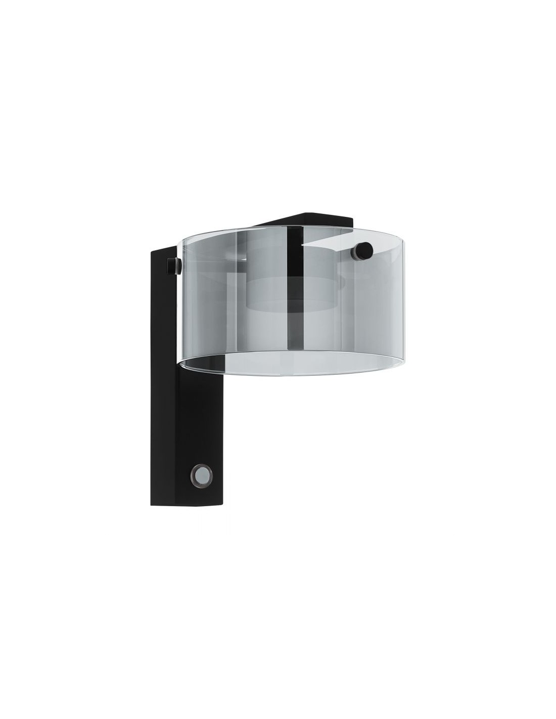 La lampada da parete COPILLOS del brand EGLO presenta un profilo in metallo finitura nero e diffusore rotondo in vetro fumé rivolto verso il basso.