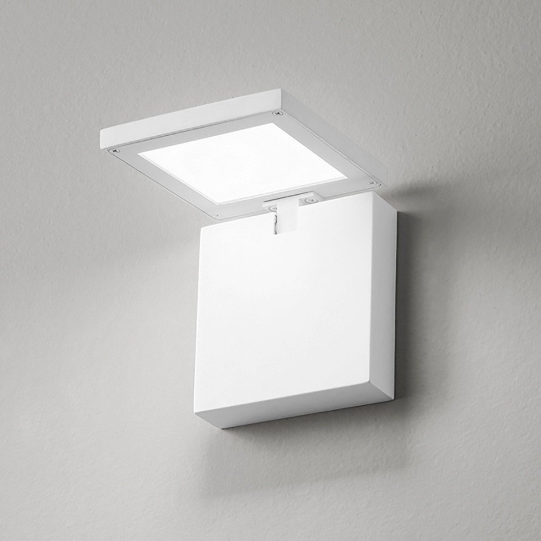 Corpo in metallo verniciato a polvere colore bianco opaco o nero opaco, diffusore in acrilico satinato ed interruttore on/off. L’applique ha una forma quadrata con diffusore mobile con angolazione regolabile fino a 90°.La lampada da parete può essere installata in vari ambienti della vostra casa quali, ad esempio, le scale, il soggiorno, la camera da letto, la parete dell’ingresso o la camera che usate come studio e grazie al suo design semplice ma ricercato, si adatterà in vari contesti, anche in luoghi pubblici. L’originalità di questa lampada sta proprio nella forma, ideata per creare un’armonia visiva in termini di linee o ancora meglio per rompere un effetto troppo monotono. Un corpo illuminante adatto sicuramente per uno stile ultramoderno, una luce diffusa consigliata per qualsiasi stanza. ll corpo illuminante è provvisto di un modulo led integrato da 10W con tonalità di luce calda (3000°K) a 700LM (unità di misura del flusso luminoso) e driver integrato, la lampada ha un grado di protezione IP20 quindi adatto solo ad ambiente interni con assenza di umidità.
