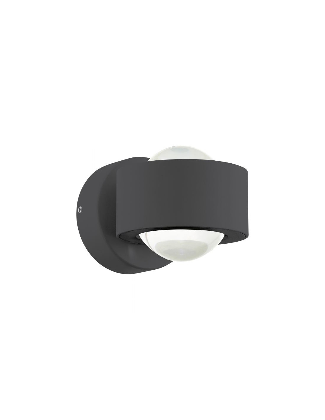 L’applique da parete TREVIOLO del brand Eglo presenta una struttura in lega di alluminio di colore antracite e diffusore sferico in vetro chiaro a led integrato, doppia missione di luce, verso il basso e verso l’alto.