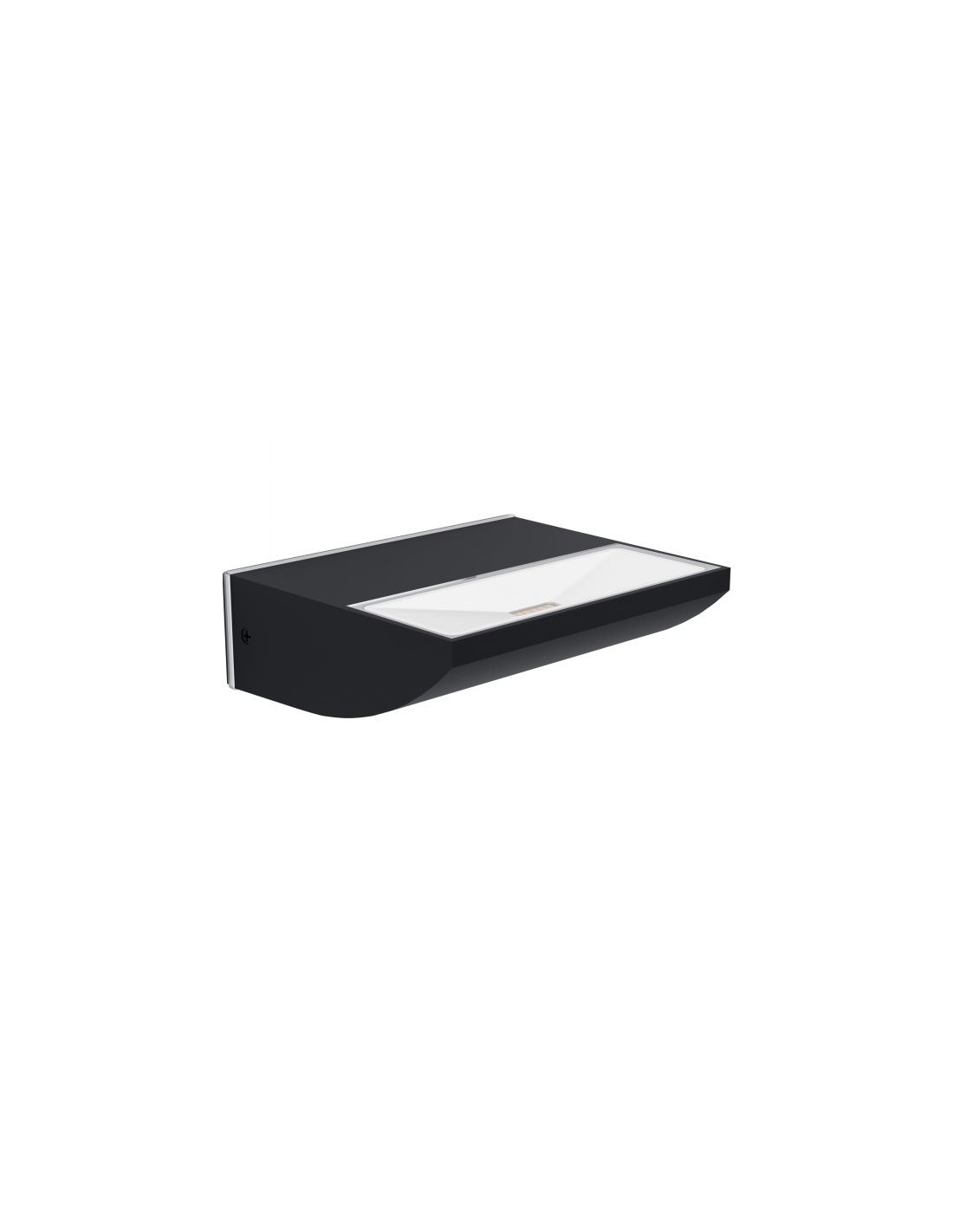 La lampada da parete SORRONARO del brand Eglo è realizzata in alluminio nero con diffusore in policarbonato bianco, rivolto verso l’alto.