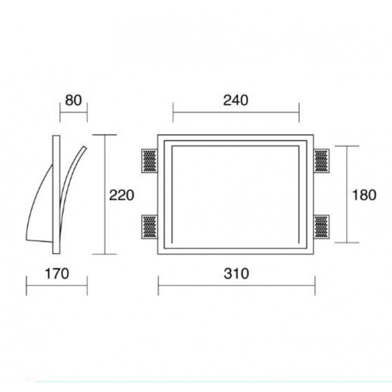 Applique da incasso a scomparsa realizzato in gesso, adatto per ambienti interni.