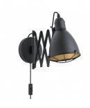 Applique Treburley Braccio Estendibile Nero Oro H20 cm Eglo