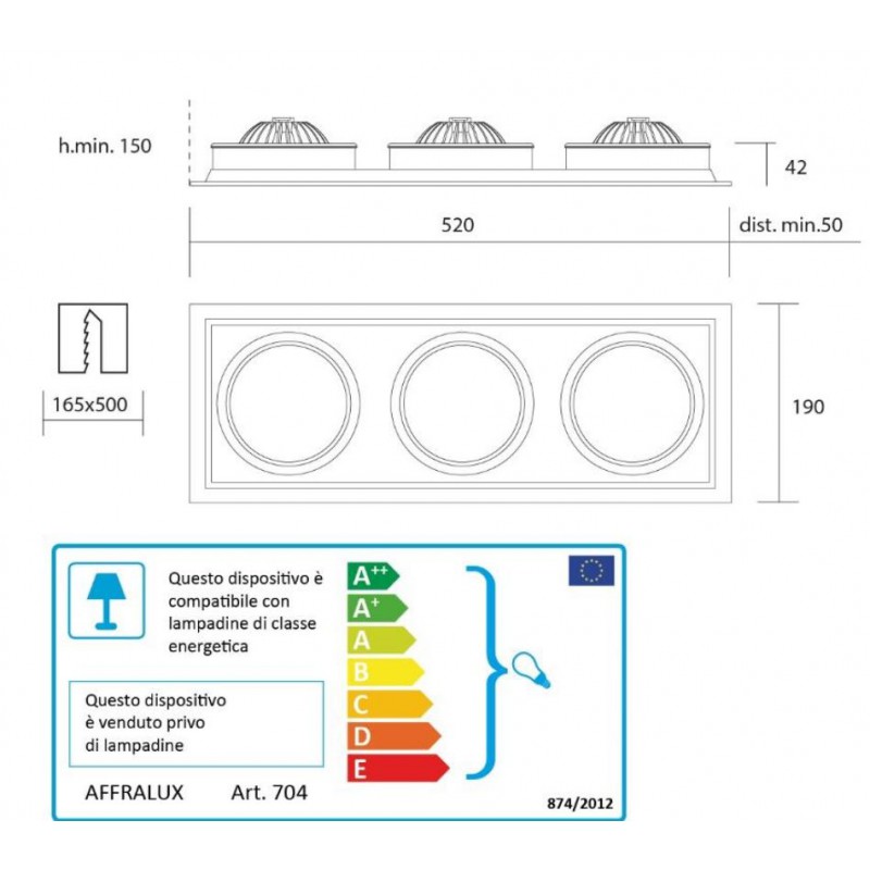 - Lampadine: 3 x G53 max 50w (non incluse)