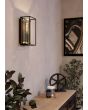 Lampada a parete con struttura in acciaio nero e ottone spazzolato, attacco lampadina E27