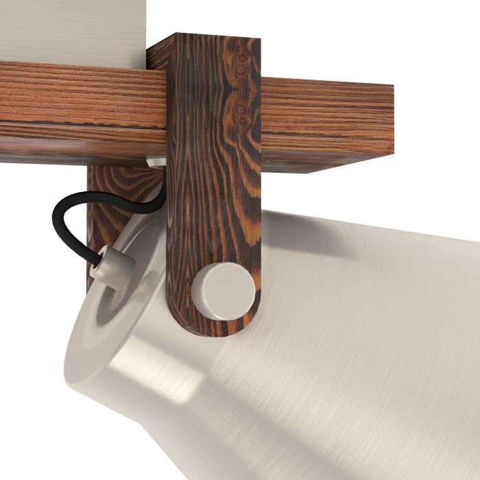 Lampada da parete con struttura in metallo e legno, finitura acciaio marrone rustico, attacco lampadina E27