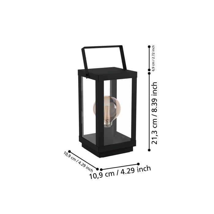 La lampada da tavolo BRADFORD 1, con il design lineare di una lanterna, è composta da un corpo nero rettangolare in metallo con un manico nero decorativo in metallo. Le quattro superfici di vetro chiaro consentono di vedere la lampadina all’interno. È possibile accendere e spegnere la lampada comodamente tramite un interruttore presente sul cavo. Si armonizza perfettamente con vari stili di arredamento. Sul comodino della camera da letto, nel soggiorno, nella sala da pranzo o nel corridoio: questa moderna lampada offre per ogni ambiente una piacevole illuminazione. La lampadina a filamento presente nell’immagine non è inclusa nella consegna. Per la lampada è adatta qualsiasi lampadina con attacco E27.