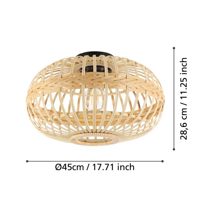 La lampada a sospensione AMSFIELD è composta da un paralume rotondo in legno di bambù marrone intrecciato. Il paralume intrecciato crea un intrigante gioco di luci e ombre al soffitto. Questa lampada a sospensione si armonizza perfettamente con stili di arredamento di tendenza come vintage, boho o con uno stile di arredamento scandinavo. Offre un’illuminazione confortevole in qualsiasi ambiente, che si tratti della cucina, del soggiorno, della camera da letto o della sala da pranzo. La lampadina a filamento presente nell’immagine non è inclusa nella consegna. Per la lampada è adatta qualsiasi lampadina con attacco E27.