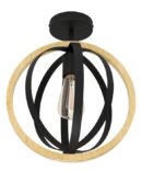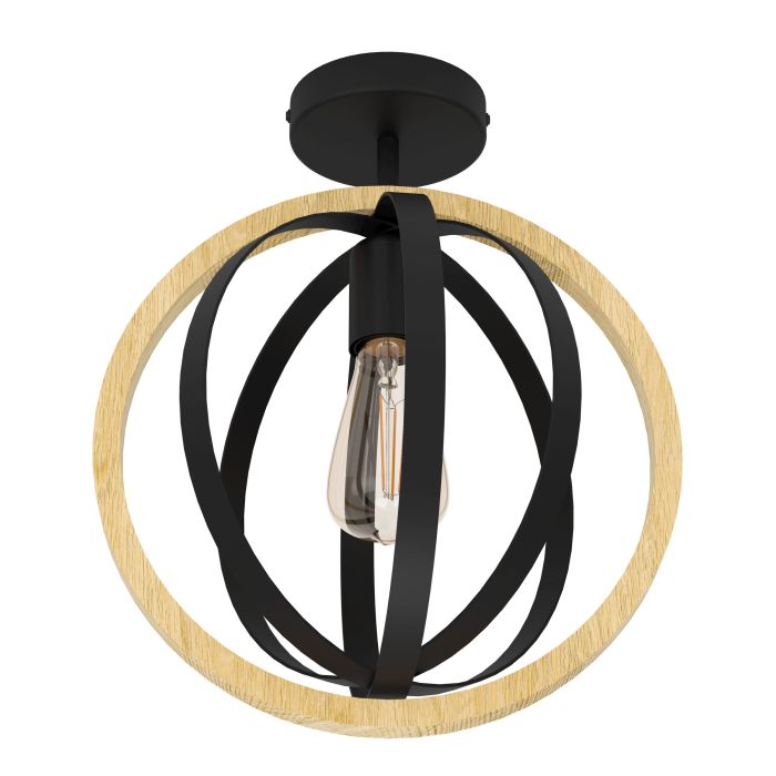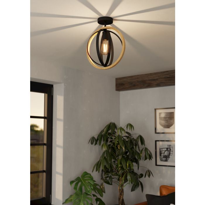 La plafoniera con struttura in acciaio e legno, finitura nero e marrone , attacco lampadina E27