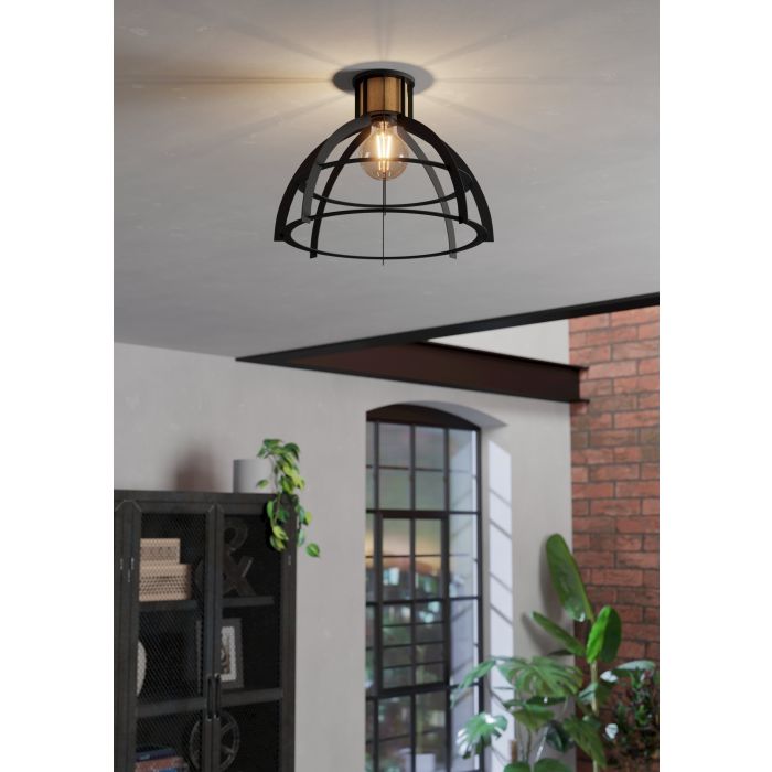 EGLO Plafoniera STILLINGTON con struttura in metallo e legno finitura nero e marrone, D. 41,5 e H. 31,5 cm