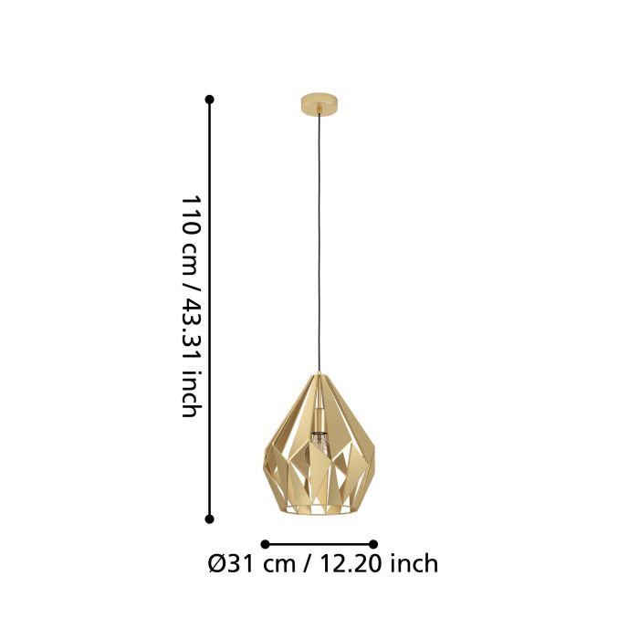 Recensisci per primo “EGLO Sospensione CARLTON con struttura in acciaio finitura dorata a una luci, D. 31 e H. 110 cm” Annulla risposta