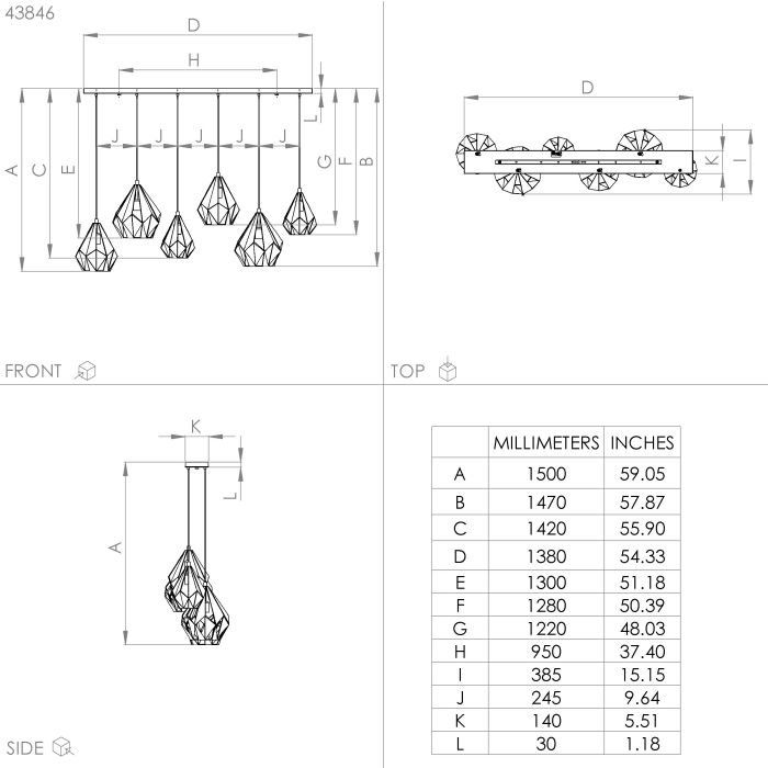- Lampadine: E27 – 6×40 watt (non incluse)