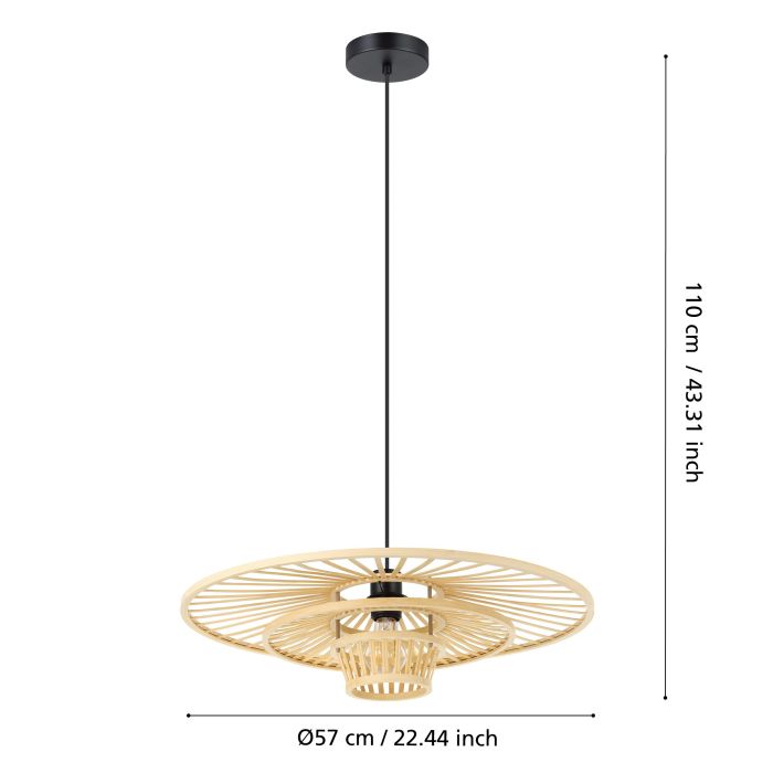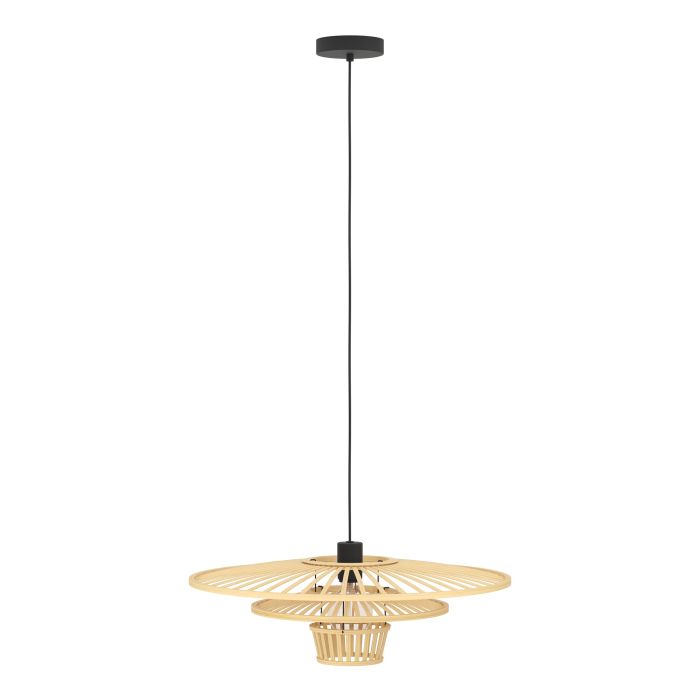 EGLO Sospensione LYDNEY con struttura in acciaio nero e legno colore marrone