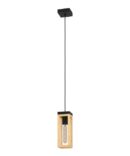 La sospensione con struttura in metallo e legno, finitura nero e marrone , attacco lampadina E27