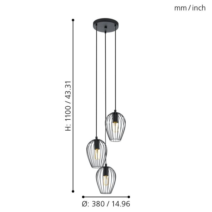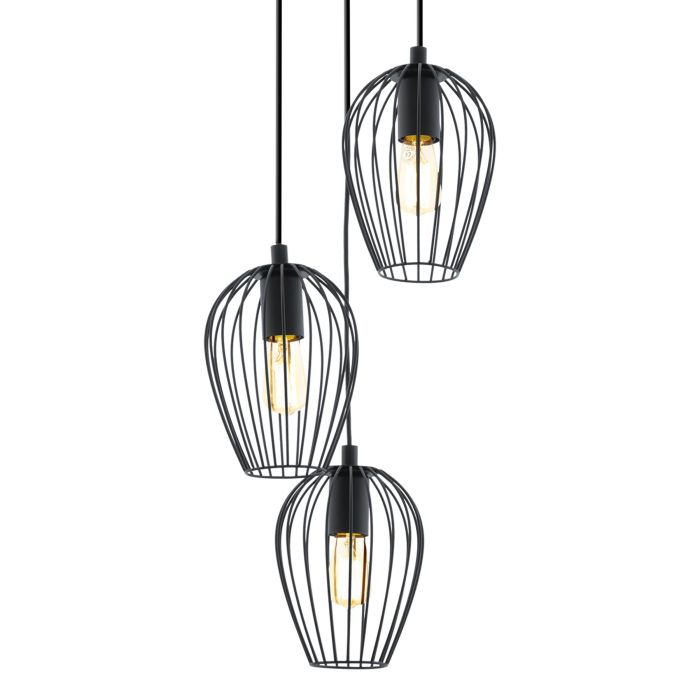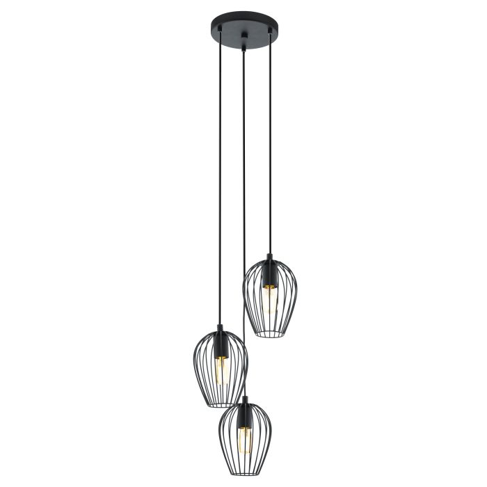 EGLO Sospensione NEWTOWN con struttura in acciaio finitura nero a tre paralumi