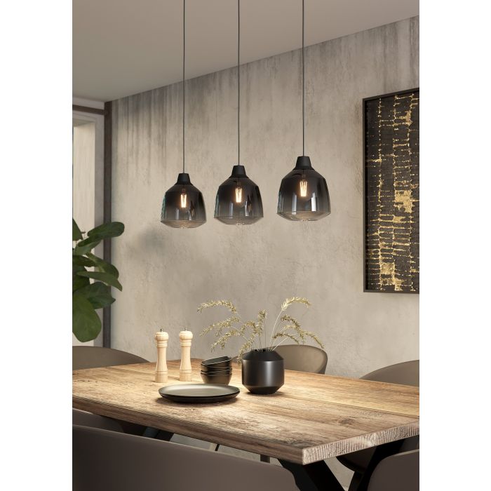 La lampada a sospensione SEDBERGH è composta da una struttura in acciaio e supporto nero in metallo con tre diffusori finitura nero grigia trasparente rotondi. . La lampada è dotata di tre lampadine , non incluse nella consegna. Una lampada dal design industriale che si armonizza perfettamente con ogni stile di arredamento e offre un’illuminazione particolare per la tua sala da pranzo o il corridoio. Per la lampada è adatta qualsiasi lampadina con attacco E27.