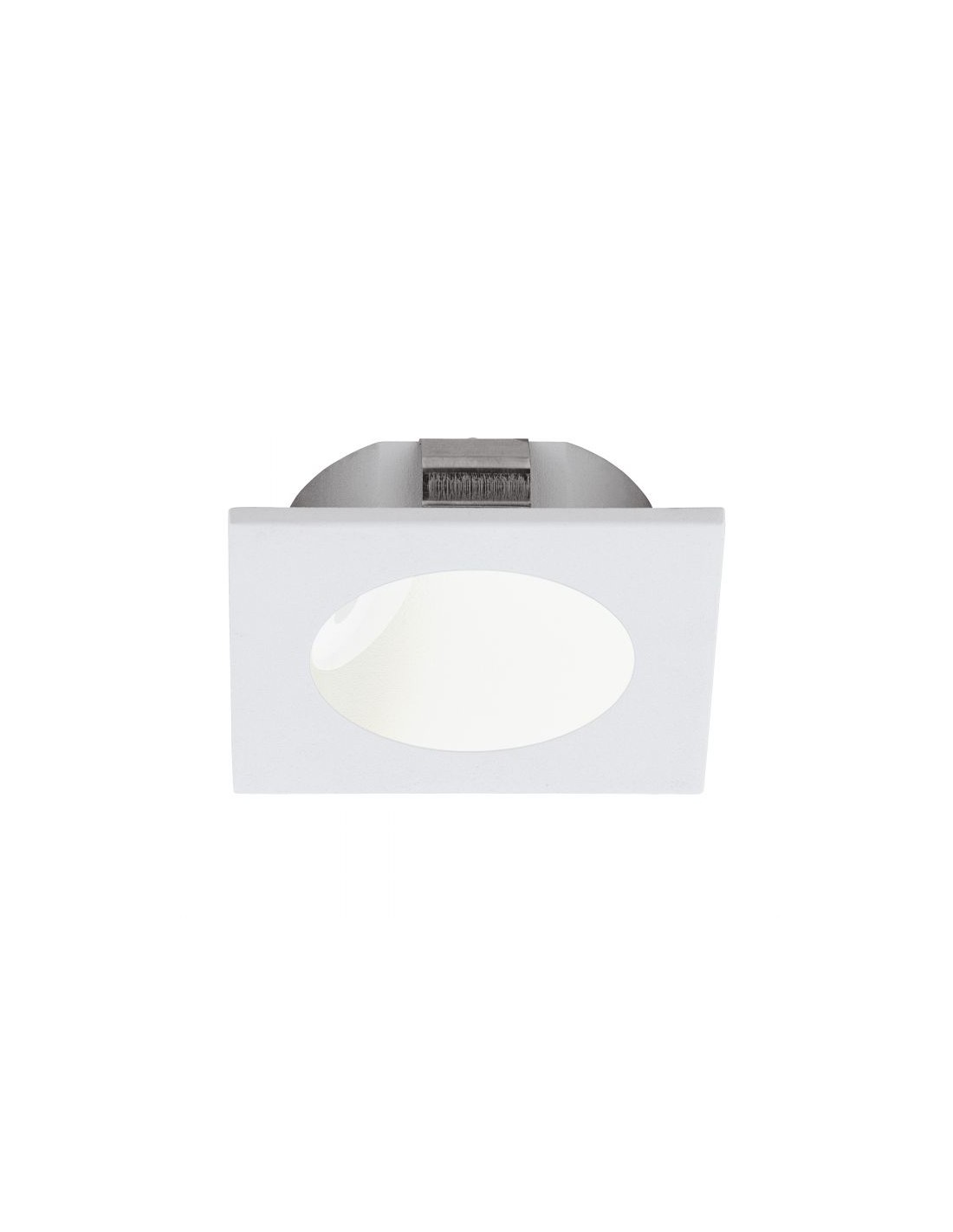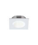 Il faretto da incasso ZARATE del brand EGLO è composto da una struttura quadrata realizzata in lega di alluminio bianco e diffusore in policarbonato in tinta con la struttura.