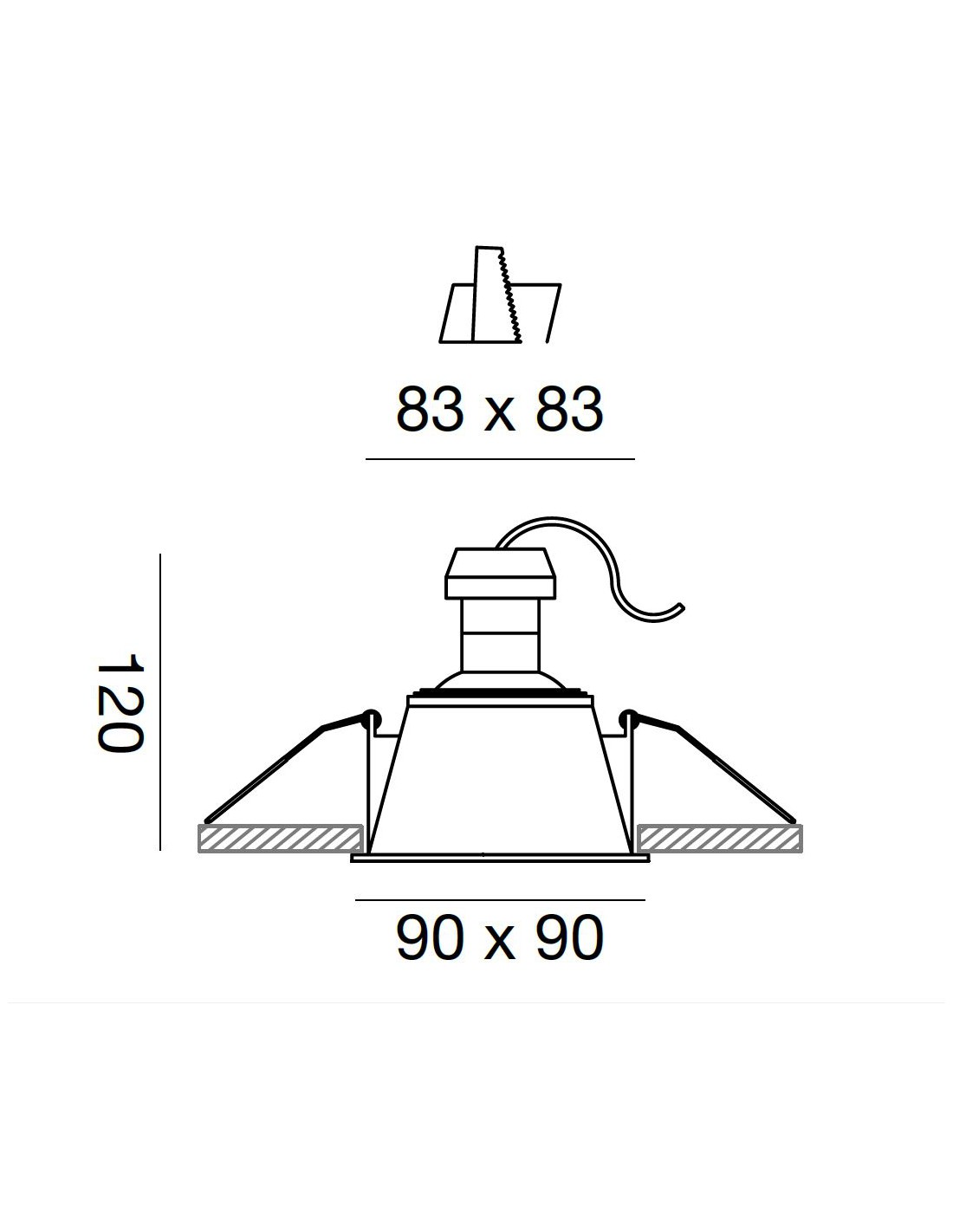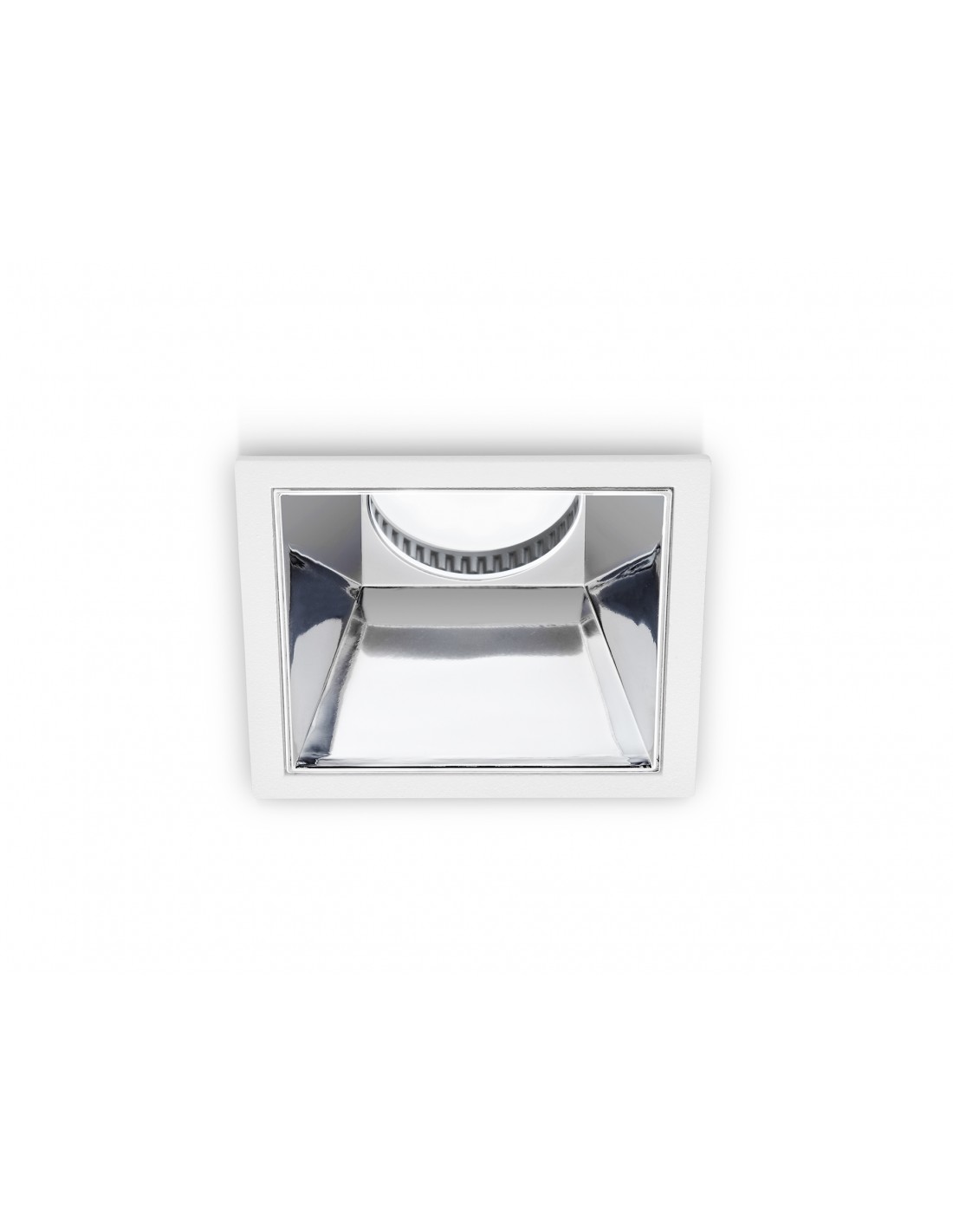 Questo faretto da incasso quadrato é realizzato con struttura in alluminio finitura bianco opaco con cover interna disponibile in oro lucido, cromo e rame.