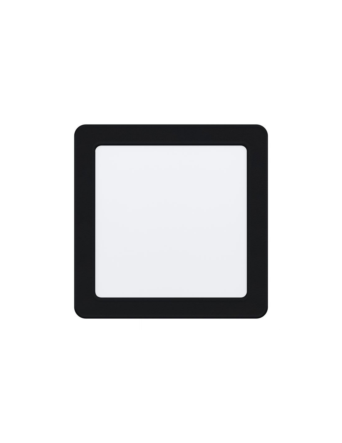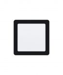 Il faretto da incasso FUEVA del brand EGLO è composto da una struttura quadrata realizzata in metallo di colore nero e diffusore in policarbonato bianco.