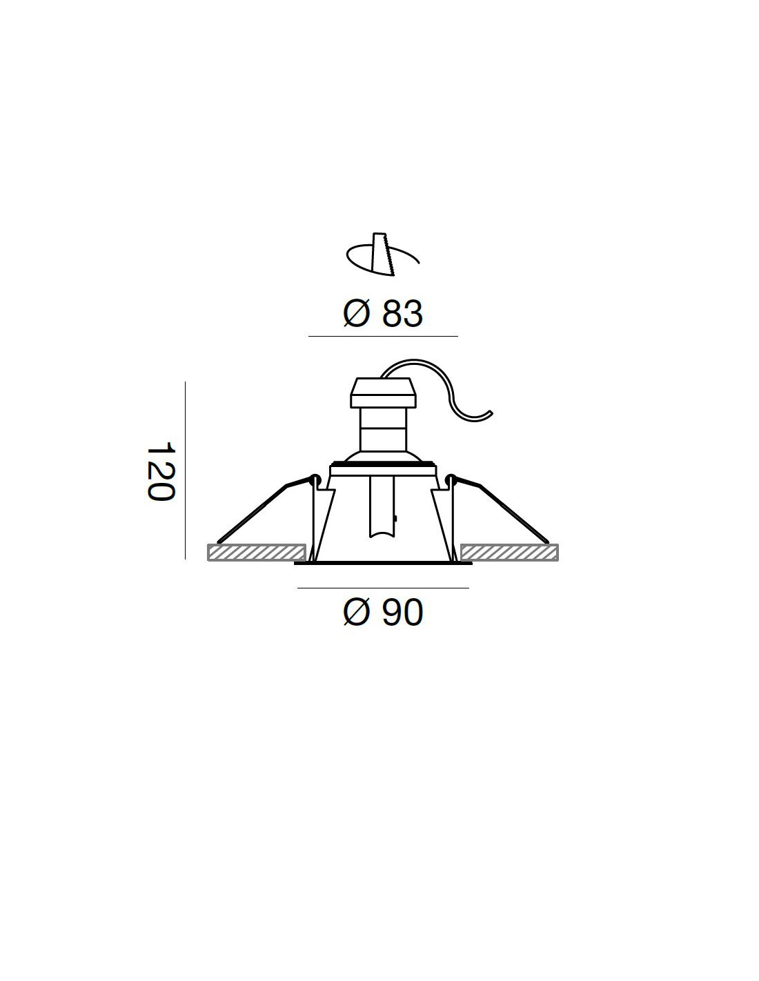 Questo faretto da incasso rotondo é realizzato con struttura in alluminio finitura bianco opaco con cover interna disponibile in oro lucido, cromo e rame.