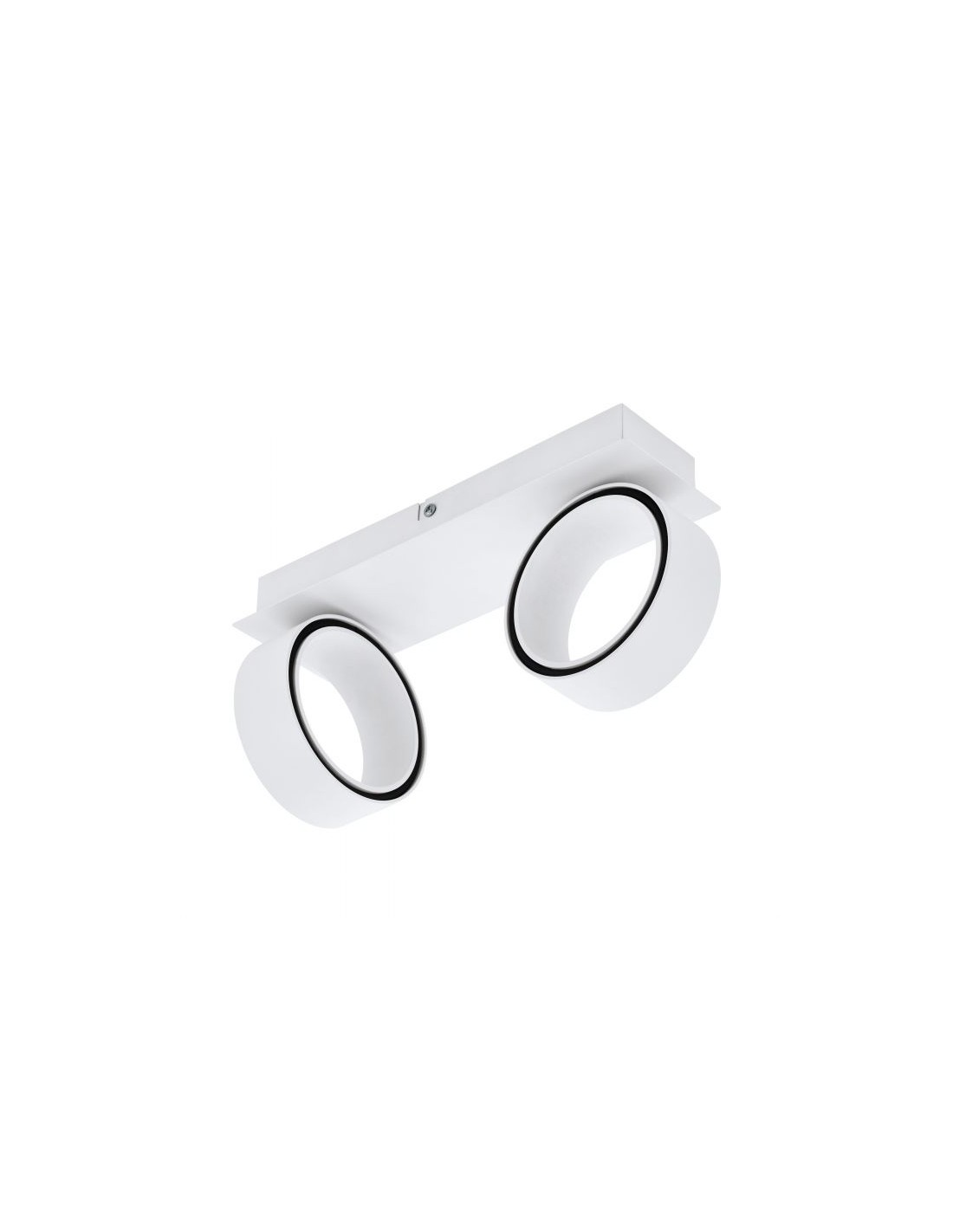 Il faretto ALBARIZA del brand EGLO è composta da una piastra rettangolare in metallo e alluminio bianco e doppio spot ad anello in tinta con la struttura.