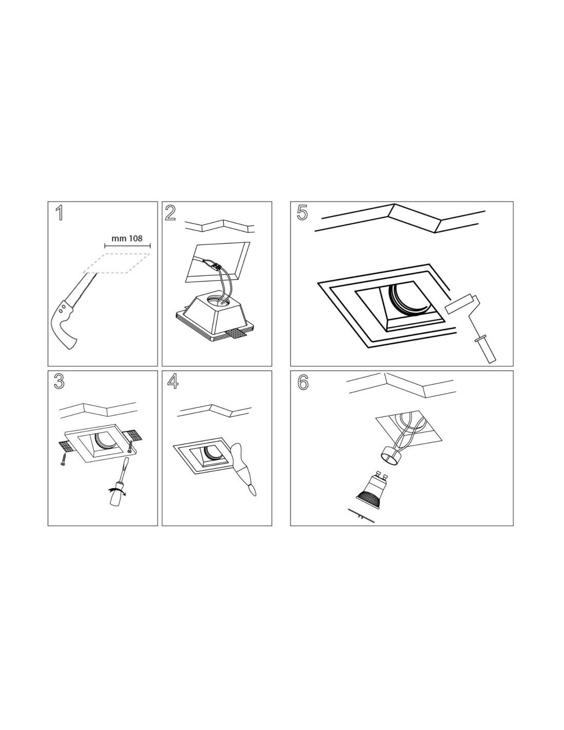 Faretto in Gesso Incasso Quadrato 10x10cm con Portalampade GU10 Isyluce 807