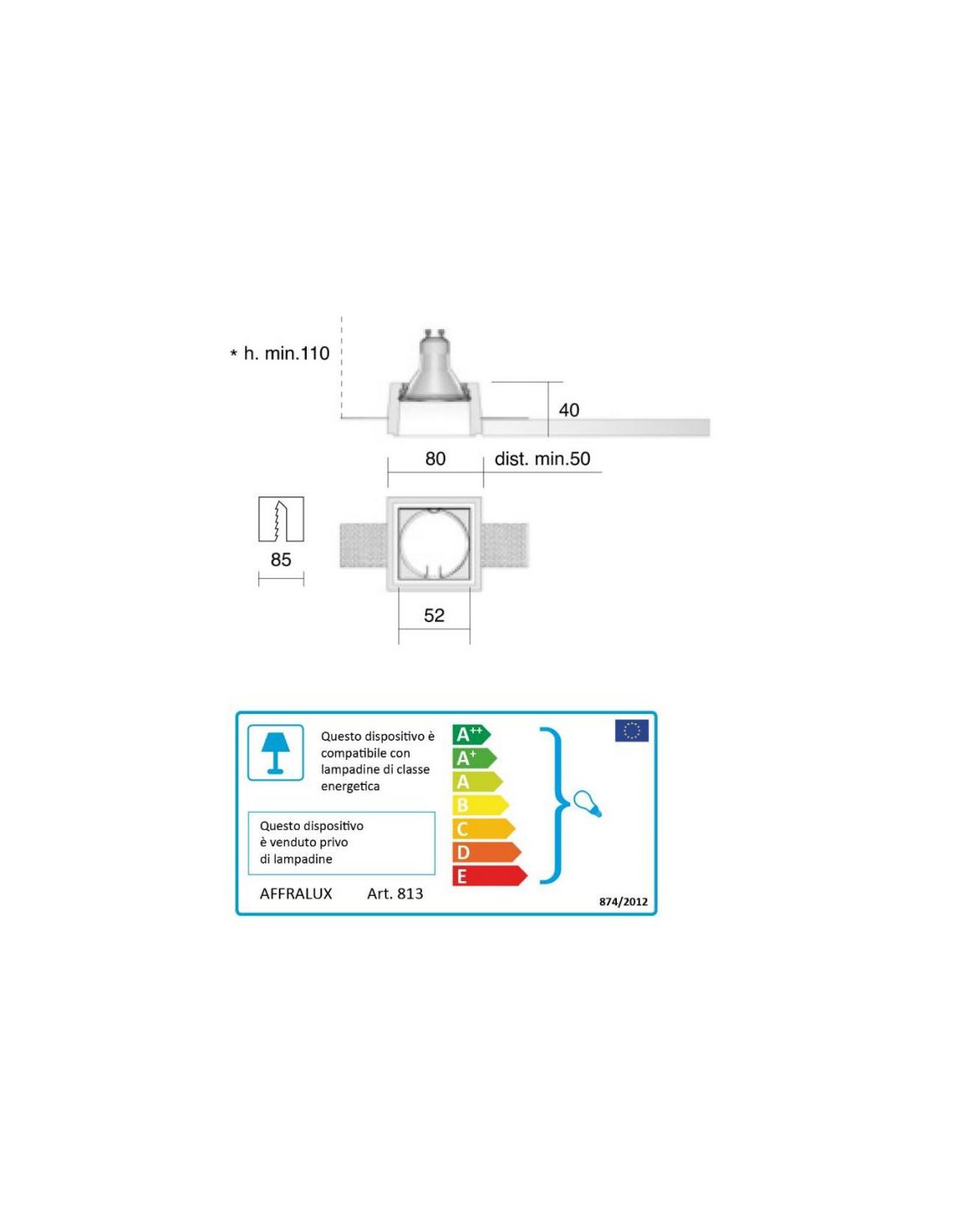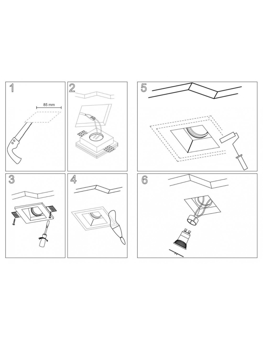 Faretto in Gesso Incasso Quadrato 8x8cm con Portalampada GU10 Isyluce 813