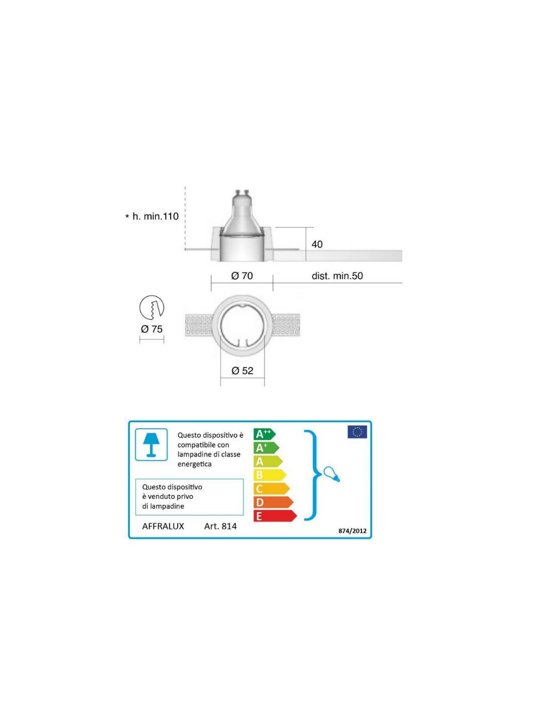 La struttura è rotonda con staffe in alluminio incorporate nella parte superiore per facilitarne l’installazione nei contro soffitti in cartongesso da mm 9 a mm 18.