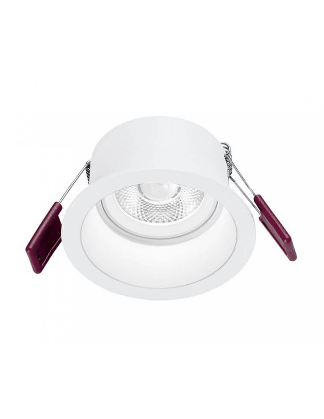 Il faretto da incasso rotondo DIONE é realizzato in alluminio diametro 9 cm, finitura bianco satinato, e diffusore trasparente. Disponibile anche in versione nero satinato.