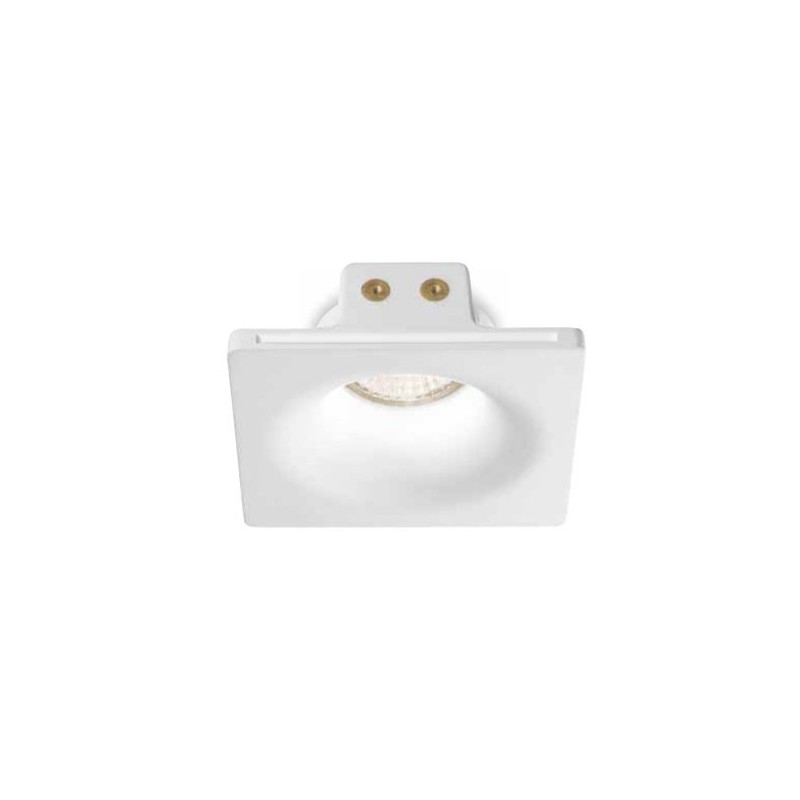 Faretto da incasso quadrato realizzato interamente in gesso, molto versatile, installabile in qualsiasi stanza della casa.