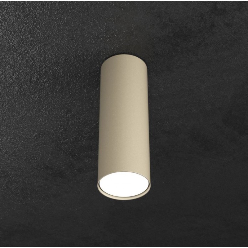 Questa faretto da soffitto della collezione Shape è composto da un diffusore cilindrico realizzato in metallo verniciato sabbia.