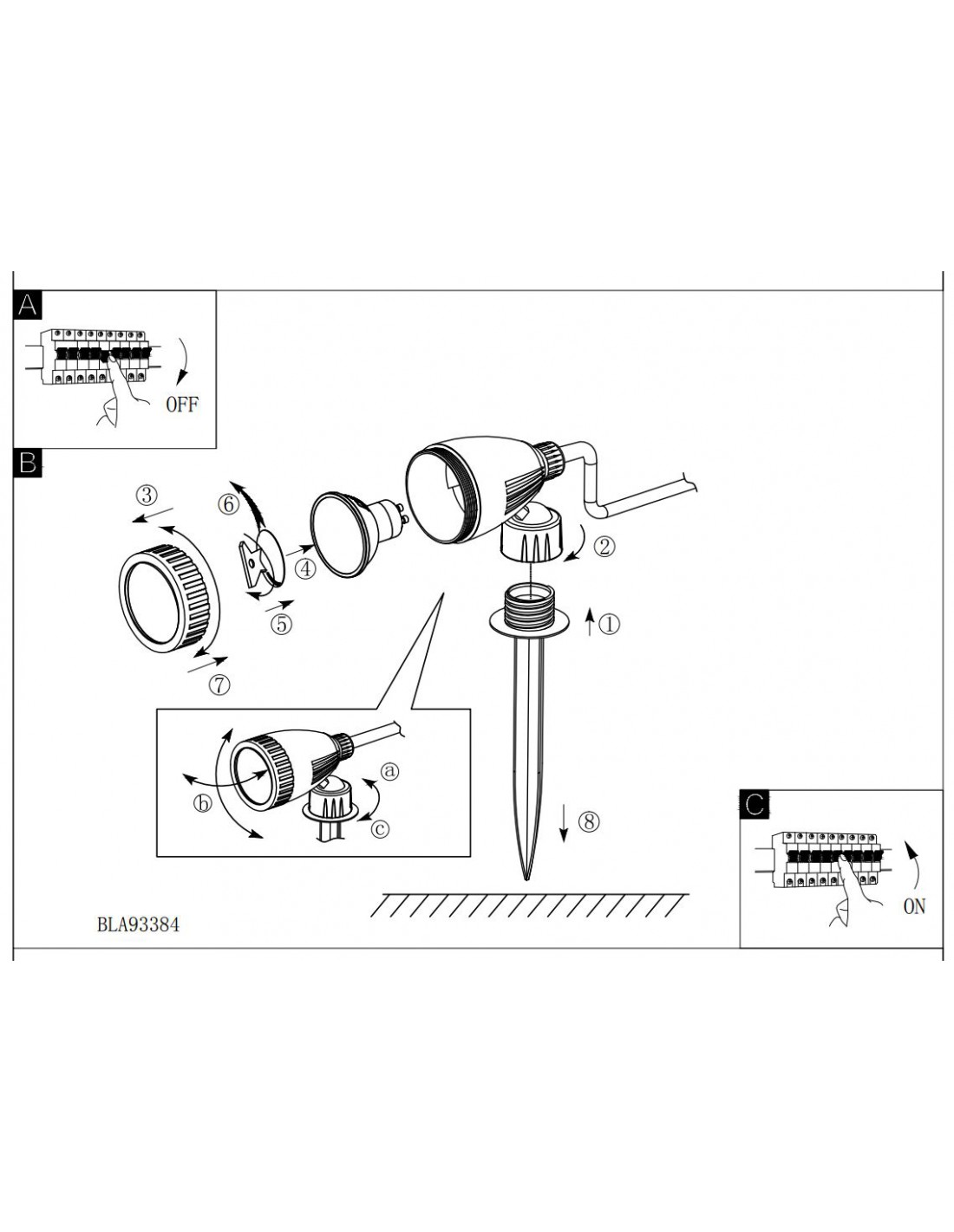 Faretto Proiettore Terra Esterno GU10 Con Picchetto Nema Nero Eglo