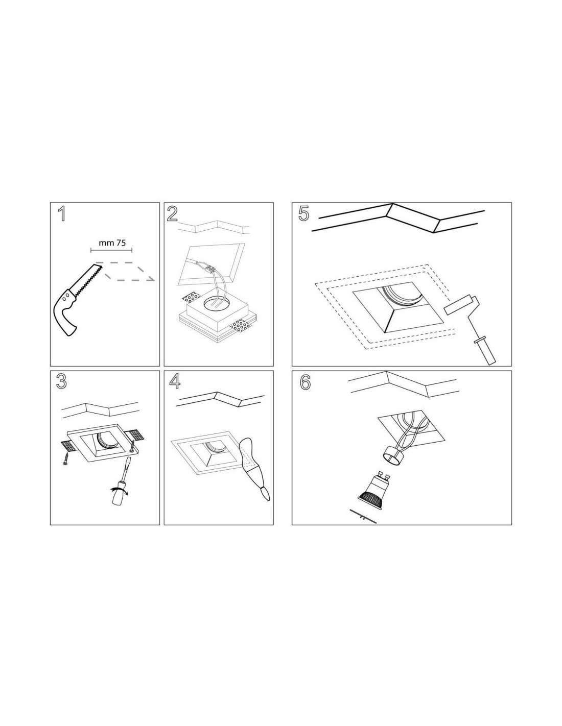 Faretto Quadrato in Gesso Da Incasso 1xGU10 Led per Controsoffitto Isyluce 833