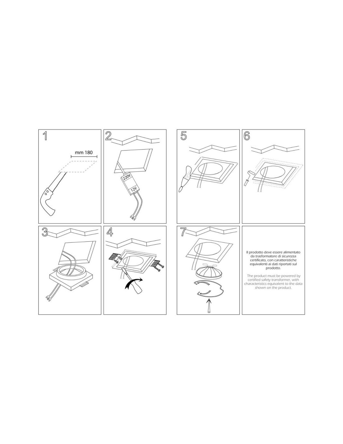 La struttura è quadrata con staffe in alluminio incorporate nella parte superiore per facilitarne l’installazione nei contro soffitti in cartongesso da mm 9 a mm 15.