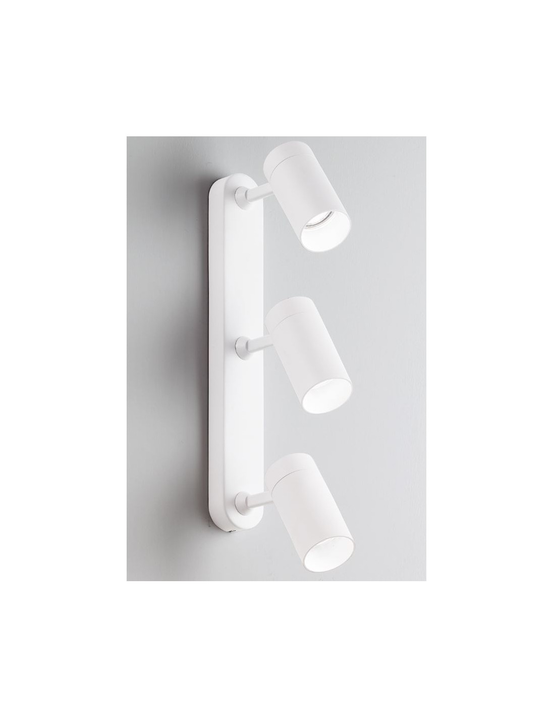 Faretto spot 3 luci di Isyluce realizzato in alluminio verniciato bianco satinato. Grazie allo snodo é possibile orientare il fascio di luce dai 3 faretti cilindrici per ottenere un illuminazione diretta nella zona di vostro interesse.