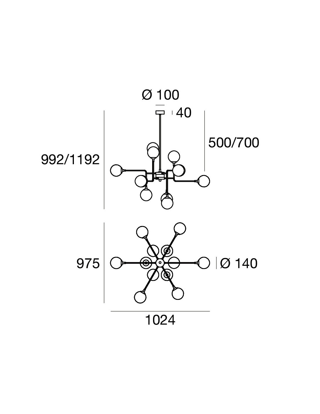 Dotato di 12 lampadine E14 da 6 watt, resa luminosa 9672 lumen, temperatura colore 2700k (luce calda). Lampadine incluse, i diffusori sparsi sulla struttura garantiranno un’ampia luminosità a 360° nell’intero ambiente, illuminazione sia verso l’alto che verso il basso.