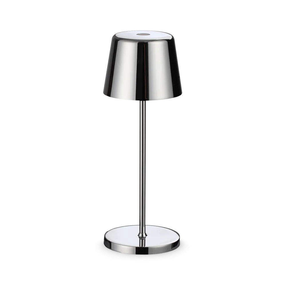 IDEAL LUX CUTE Lampada da tavolo a batteria ricaricabile con finitura cromo