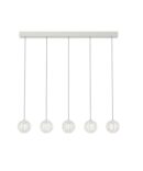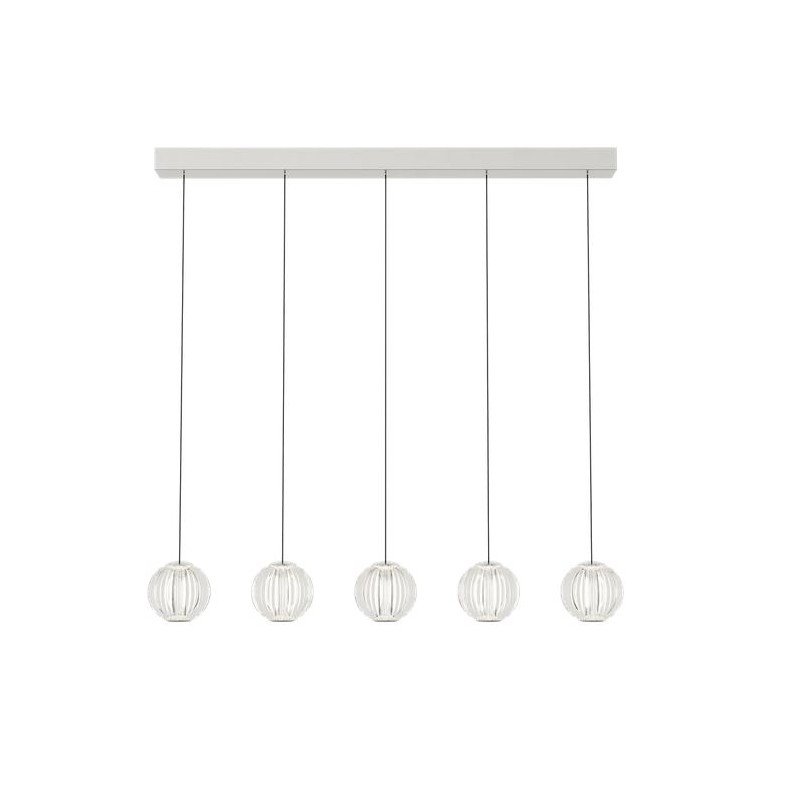 Il lampadario per tavolo da pranzo della serie DIAMOND di Ideal Lux offre un design moderno e raffinato, perfetto per arricchire l”arredo di ambienti contemporanei. Con il suo rosone in metallo cromato e i cavi in teflon trasparente, si distingue per la qualità dei materiali e l”eleganza delle linee. I diffusori, realizzati in acrilico trasparente con un sofisticato effetto cristallo molato, contengono cinque sfere illuminate da una sorgente LED integrata da 23W, che emette una luce calda (3000K) con un flusso luminoso di 2350 lumen. Ideale per illuminare tavoli da pranzo, il lampadario combina efficienza e stile, con una durata stimata di 20.000 ore. I cavi regolabili fino a 230 cm assicurano flessibilità nell”installazione.