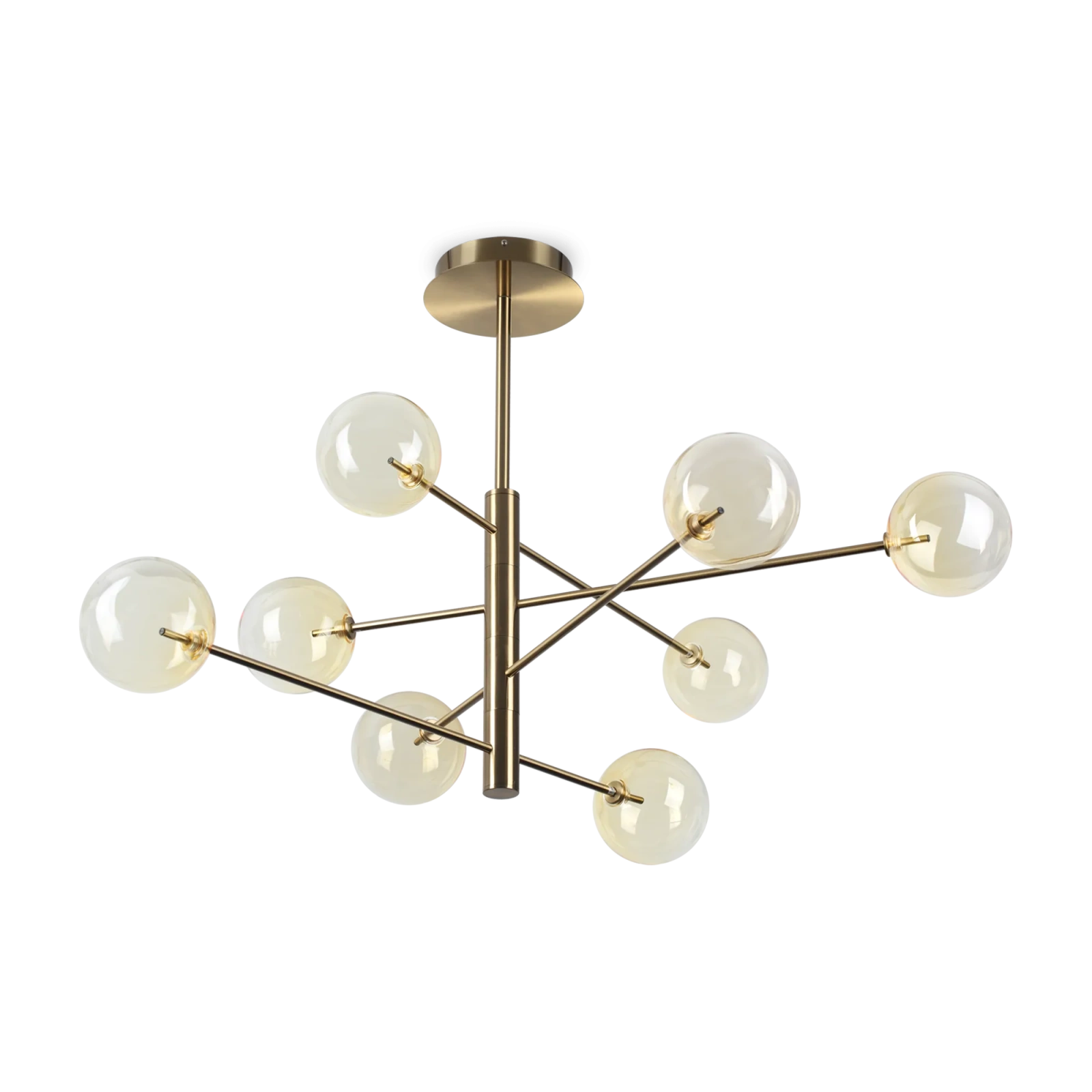 Questo lampadario a sospensione a 8 luci della collezione EQUINOXE di Ideal Lux combina design contemporaneo e materiali di alta qualità per un”illuminazione elegante e sofisticata. Montatura in metallo placcato. Diffusori in vetro borosilicato trasparente. Cavo in pvc nero. Colori: montatura cromo con vetro trasparente o fume’ sfumato, montatura ottone antico con vetro trasparente o ambra sfumato.