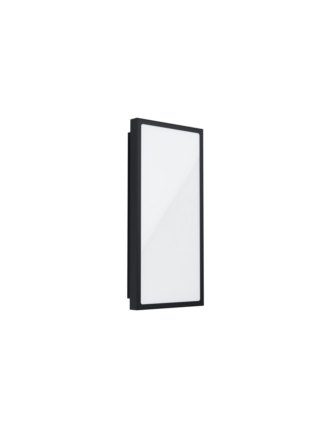 La lampada da parete della collezione CASAZZA del brand EGLO presenta una struttura rettangolare in metallo zincato di colore nero e diffusore in policarbonato bianco.