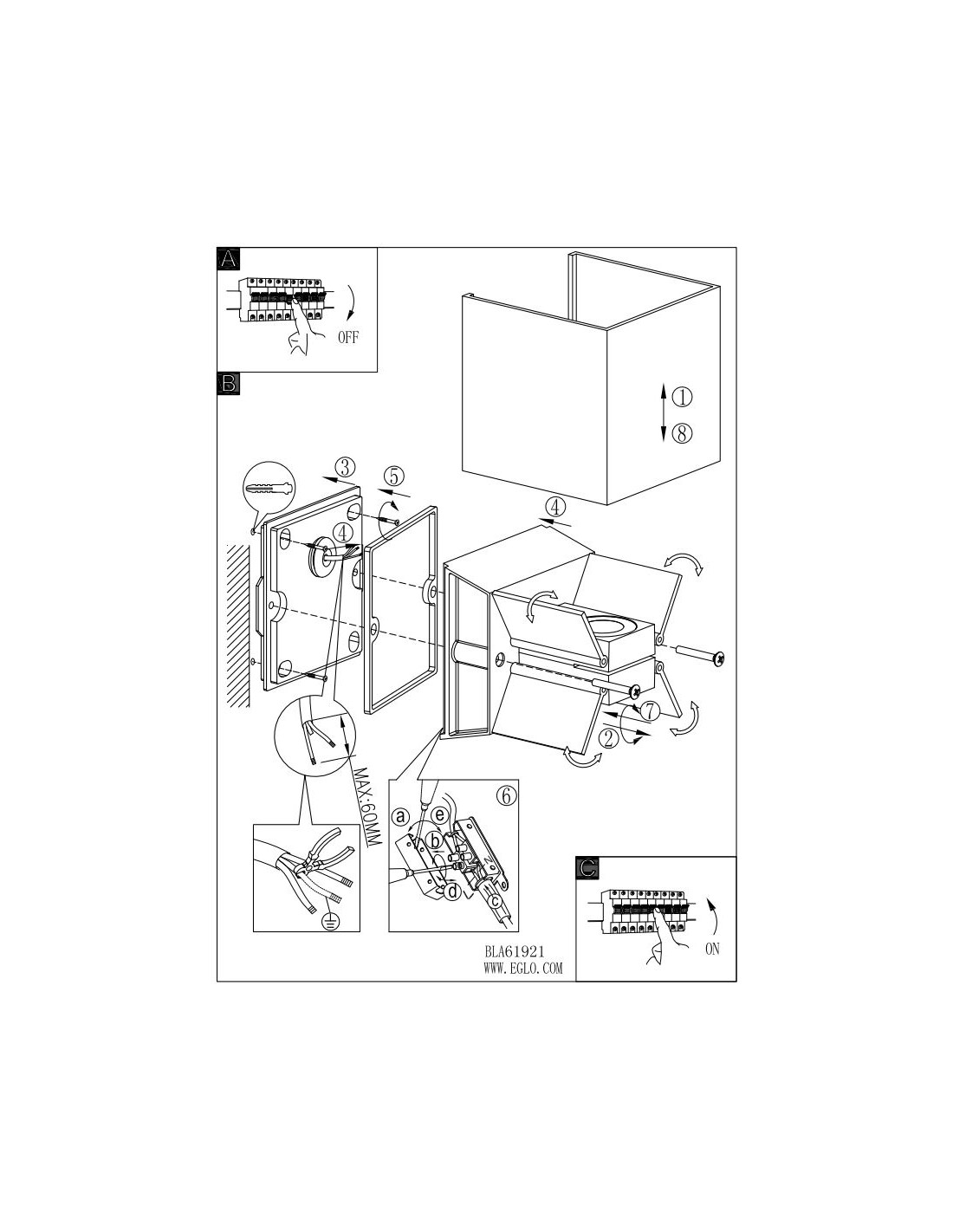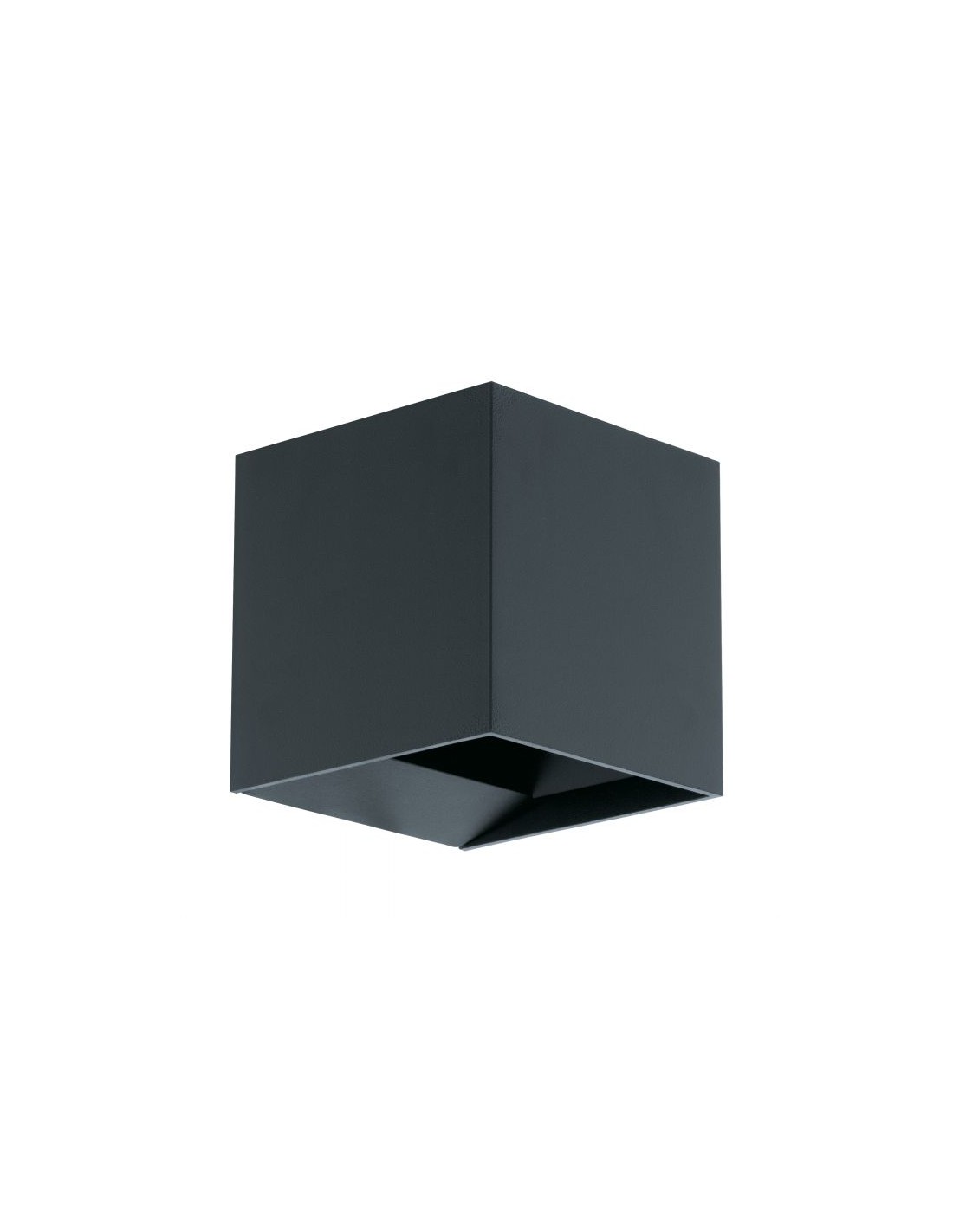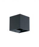 Applique biemissione della serie CALPINO del brand Eglo a forma di cubo realizzata interamente in lega di alluminio di colore antracite.